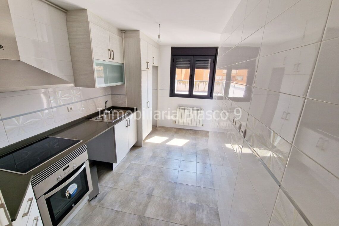 ALQUILA piso en Avenida Aragón de Alcañiz, nuevo a estrenar sin muebles para despachos profesionales o vivienda. Consta de 90 m2 distribuidos en comedor, cocina, 2 baños completos, 3 dormitorios, calefacción gas ciudad, preinstalación de aire acondicionado por conductos, suelos de parket, domótica. Además dispone de una terraza de 90 m2 y un trastero. Se trata de un 1º piso con ascensor. PRECIO: 550 €